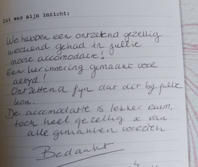 Hieronder vind u een paar reviews van onze gasten. We waarderen het zeer wanneer er een reactie wordt achtergelaten!